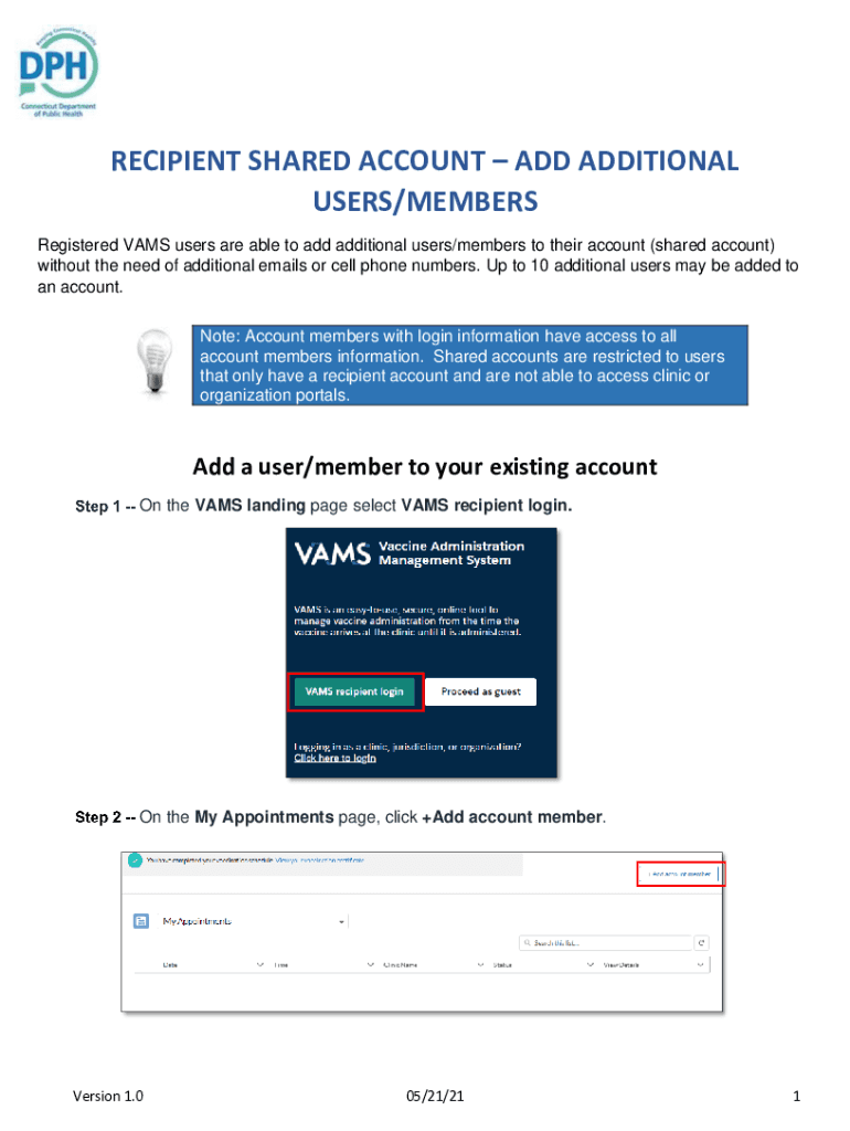 RECIPIENT SHARED ACCOUNT ADD ADDITIONAL USERS/MEMBERS Registered DAMS users are able to add additional users/members to their account (shared account) without the need of additional emails or cell