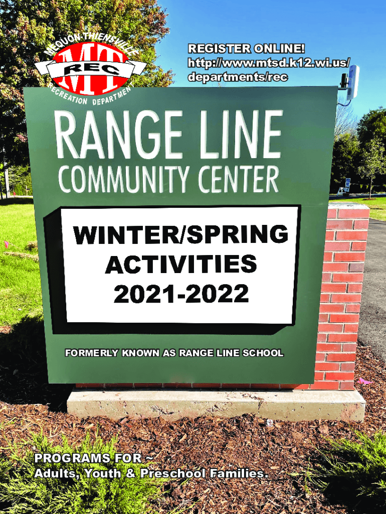 REGISTER ONLINE! http://www.mtsd.k12.wi.us/ departments/formerly KNOWN AS RANGE LINE SCHOOLPROGRAMS FOR Adults, Youth & Preschool Families. Directors MessageHello MequonThiensville Community Members:Thank