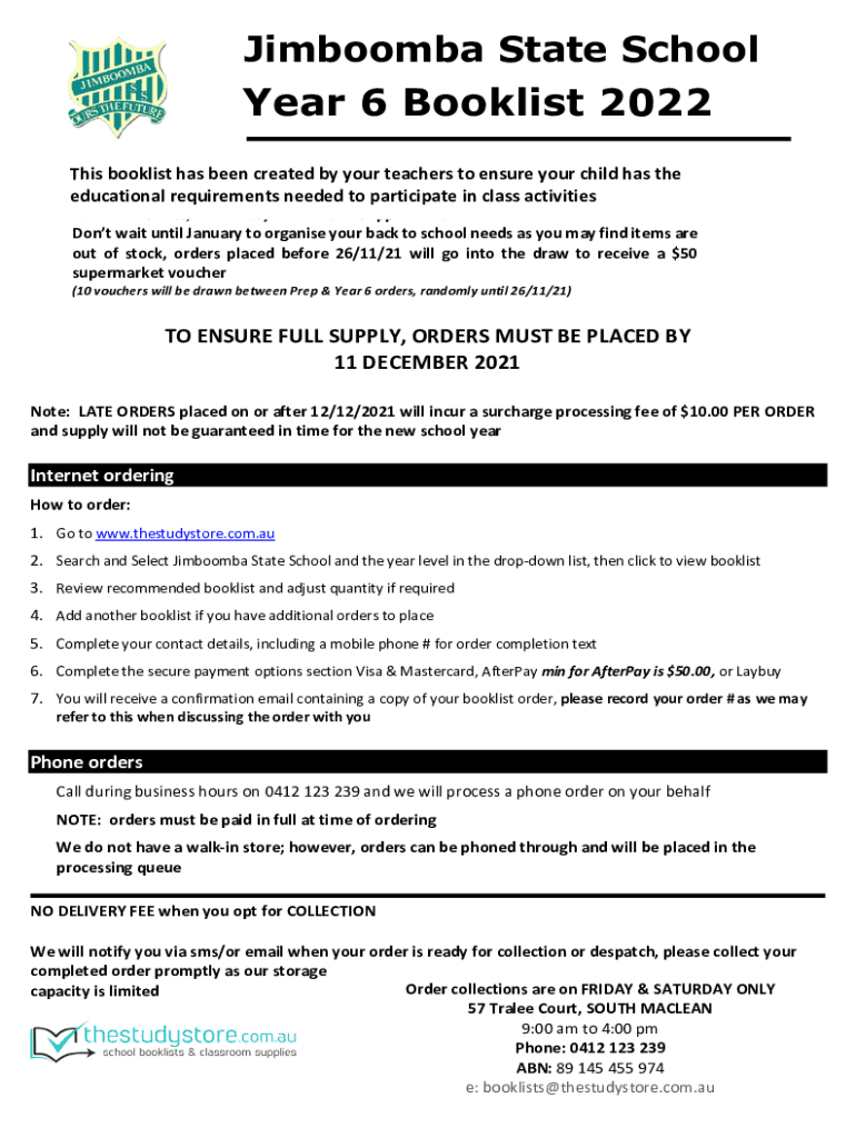 Jimboomba State Schoolyard 6 Book list 2022 This book list has been created by your teachers to ensure your child has the educational requirements needed to participate in class activitiesAvoid the