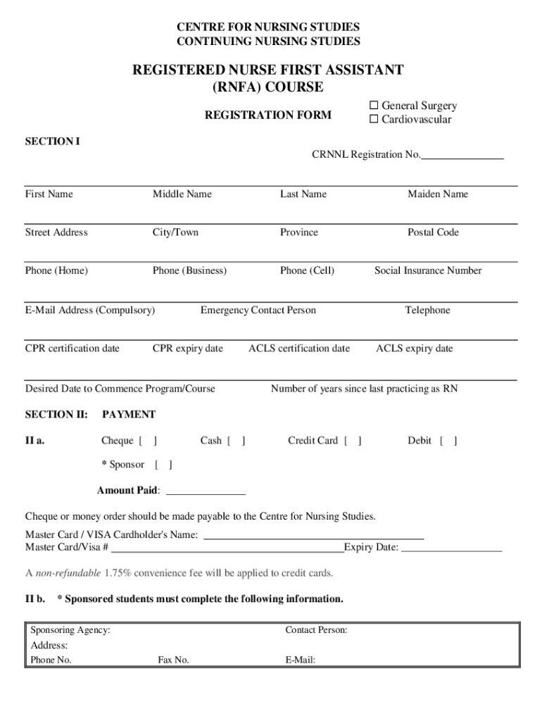 Get the free Registered Nurse First Assistant Graduate Certificate ...