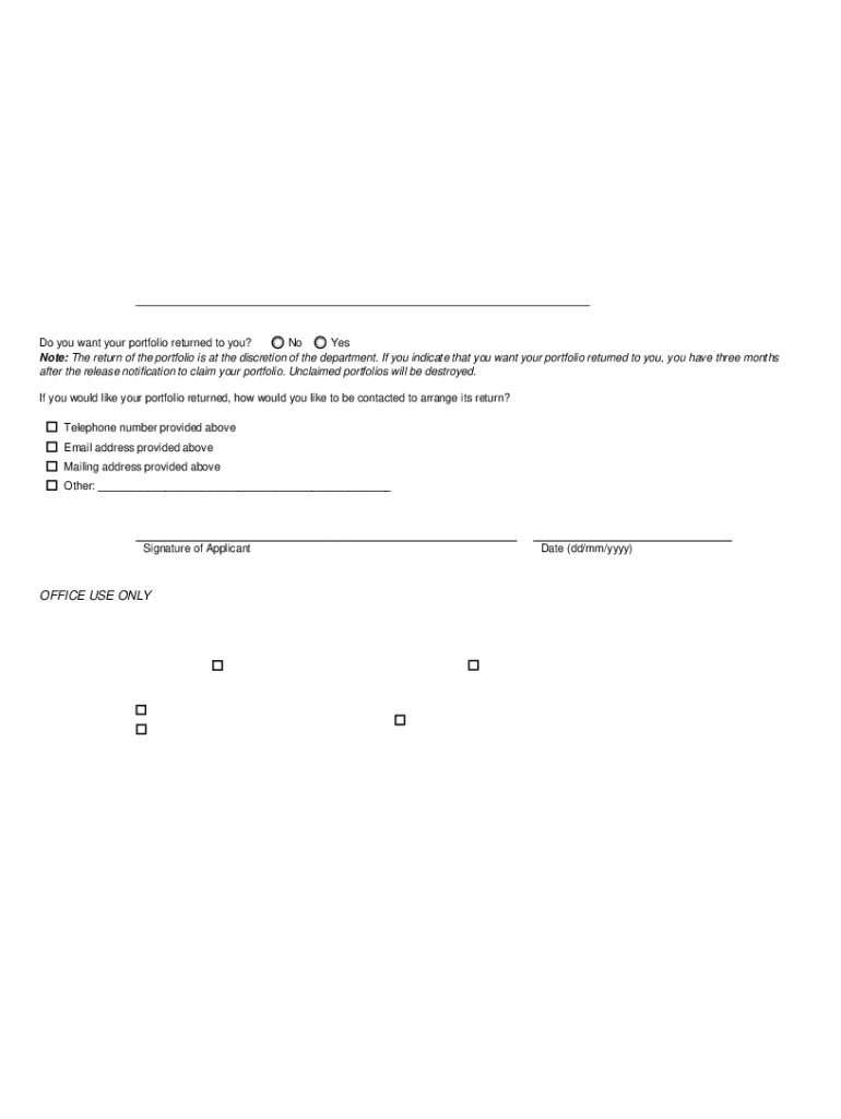 Get the free Note: Only applicants who are submitting a portfolio are ...