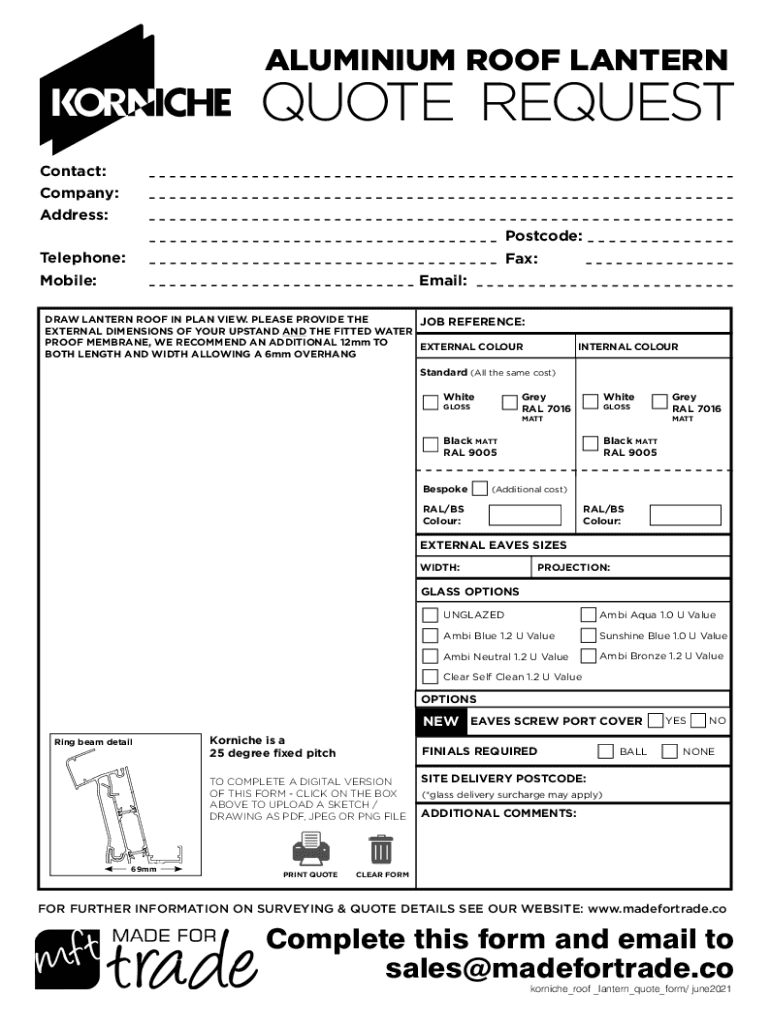 Fill out your korniche quote - download online with pdfFiller!