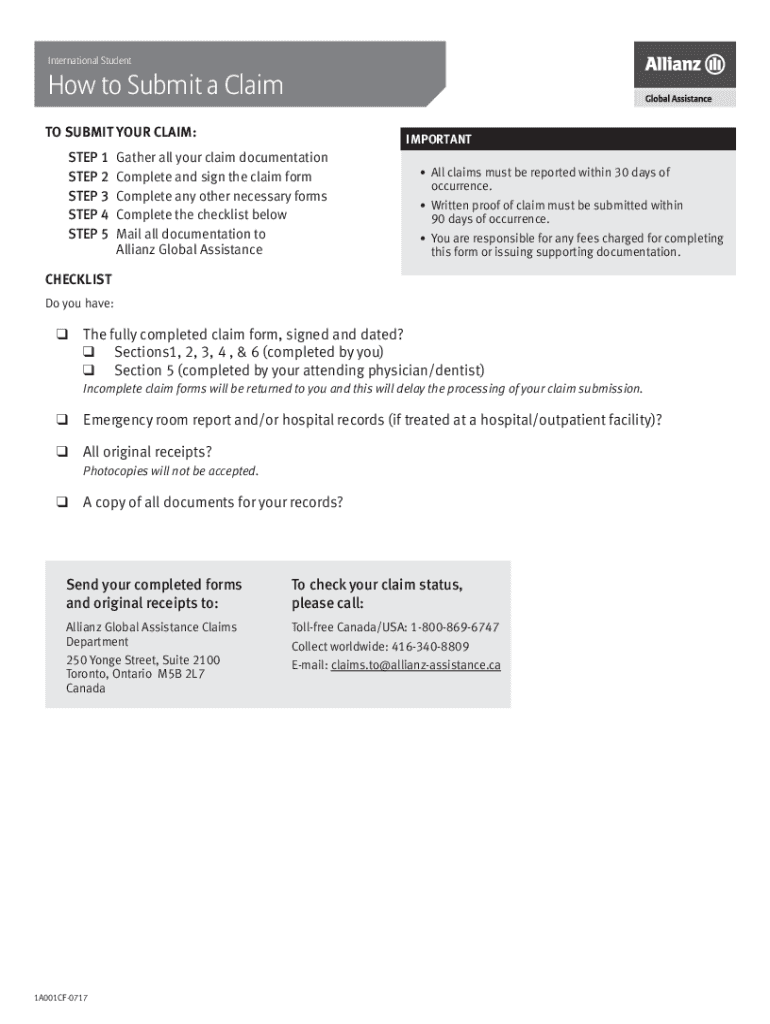 International Students to Submit a Claim TO SUBMIT YOUR CLAIM: STEP 1 STEP 2 STEP 3 STEP 4 STEP 5IMPORTANTGather all your claim documentation Complete and sign the claim form Complete any other necessary