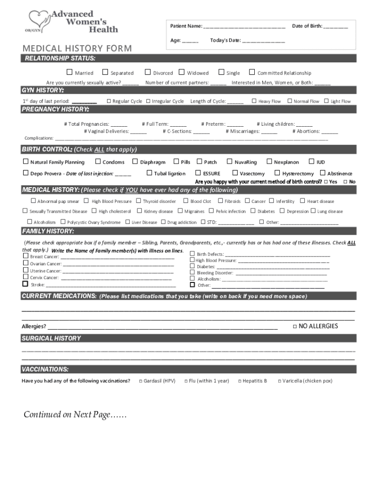 Patient Name: Age: MEDICAL HISTORY Format of Birth: Today's Date: RELATIONSHIP STATUS: Married Separated Divorced Widowed Single Committed Relationship Are you currently sexually active? Number of