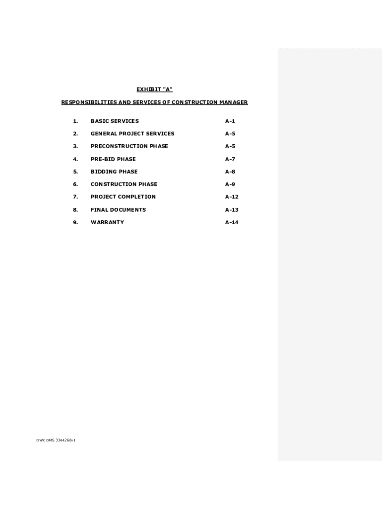 Get the free Exhibits A-D to Construction Management Agreement(DMS)1 ...