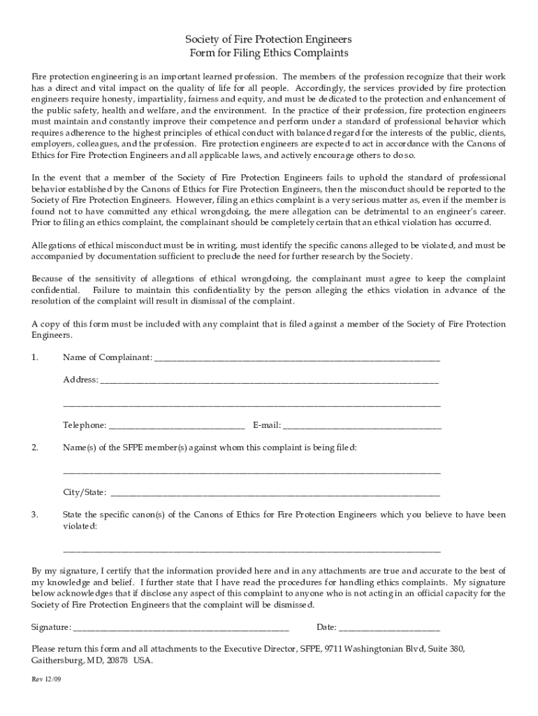 Society of Fire Protection Engineers Form for Filing Ethics Complaints Fire protection engineering is an important learned profession. The members of the profession recognize that their work has a