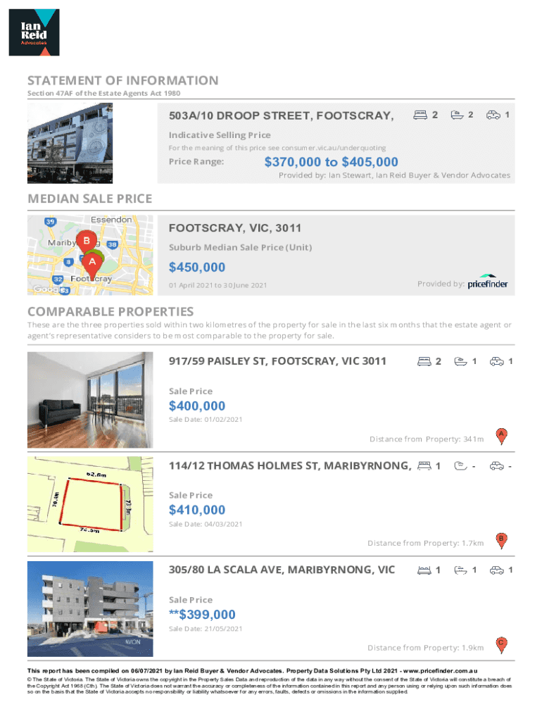 STATEMENT OF INFORMATION Section 47AF of the Estate Agents Act 1980503A/10 DROOP STREET, BOOTSTRAP,221Indicative Selling Price For the meaning of this price see consumer.vic.au/underquotingPrice Range:$370,000