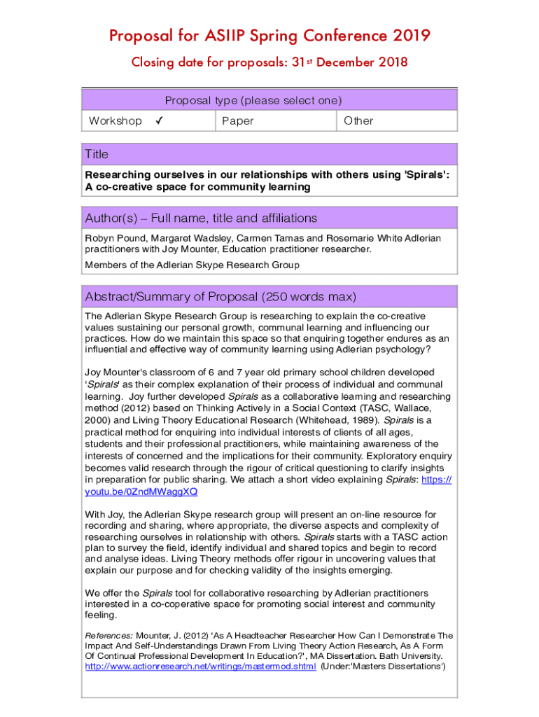 Proposal for SHIP Spring Conference 2019 Closing date for proposals: 31st December 2018 Proposal type (please select one) WorkshopPaperOtherTitle Researching ourselves in our relationships with others