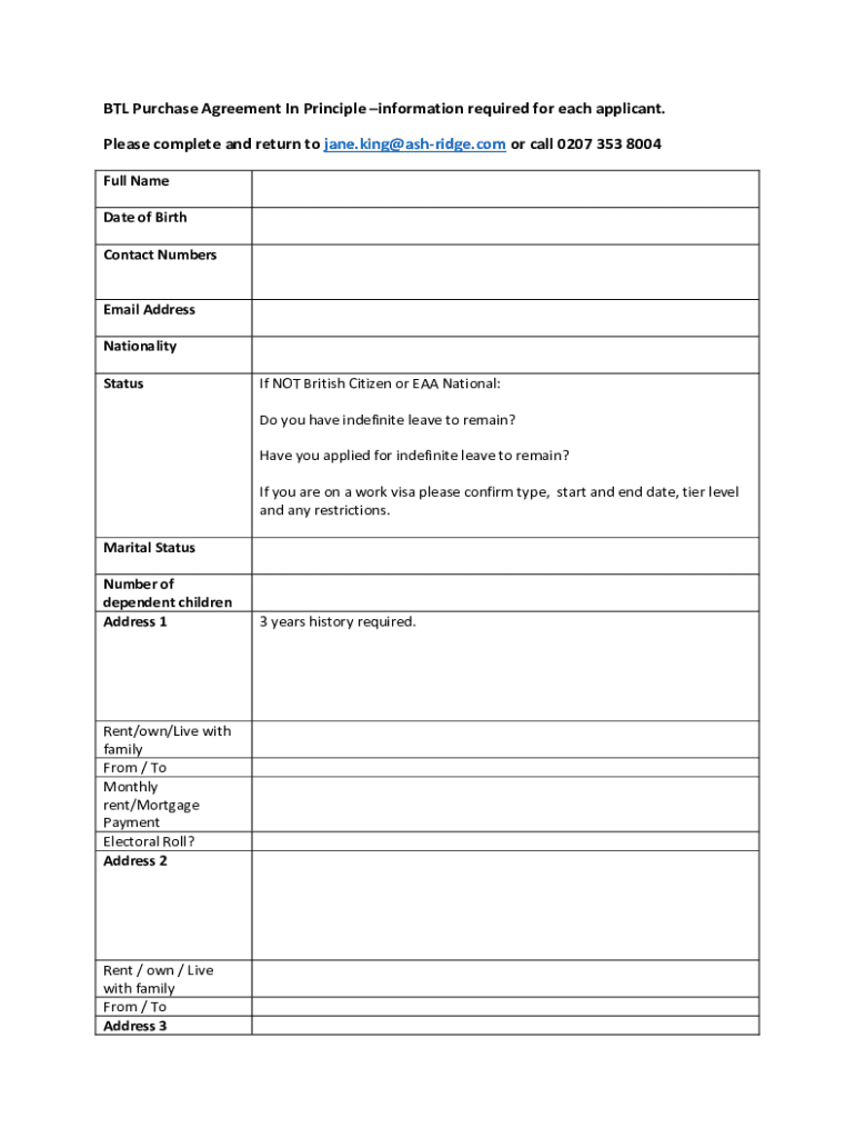 Get the free BTL Purchase Agreement in Principle Form.doc