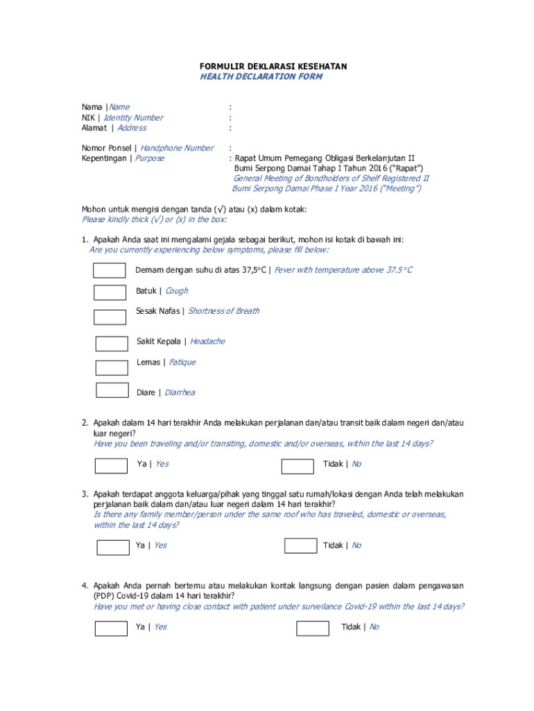 Get the free BSDE Form Deklarasi Kesehatan