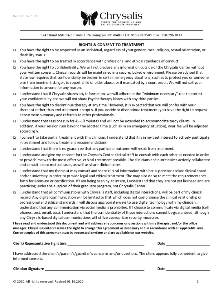 Get the free Online rights & consent to treatment - Chrysalis ...
