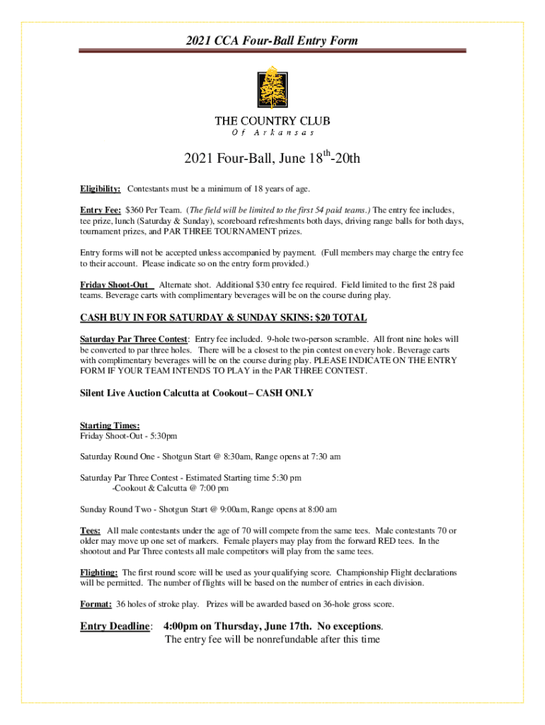 Get the free 2021 CCA Four-Ball Entry Form - countryclubofarkansas.com
