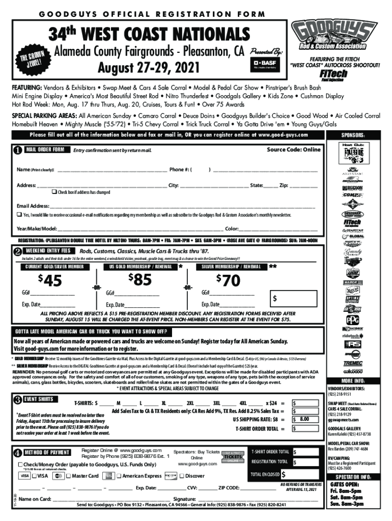 Get the free GOODGUYS OFFICIAL REGISTRATION FORM 34th WEST COAST NATIONALS