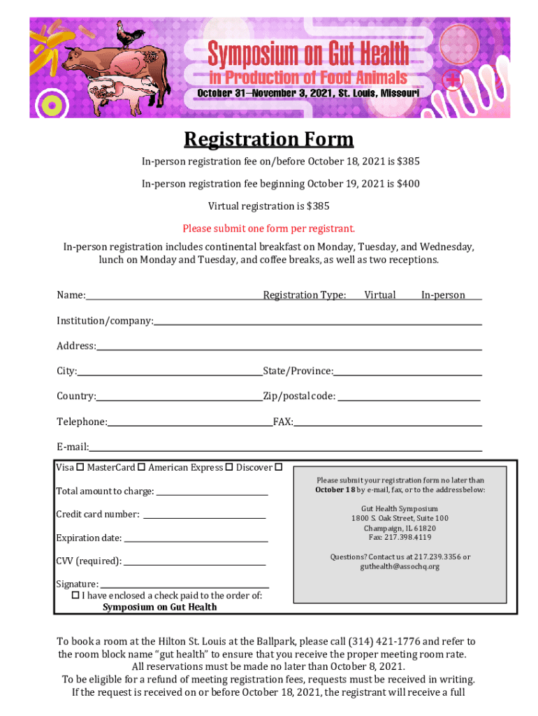 Registration Form Unperson registration fee on/before October 18, 2021, is $385 Unperson registration fee beginning October 19, 2021, is $400 Virtual registration is $385Please submit one form per