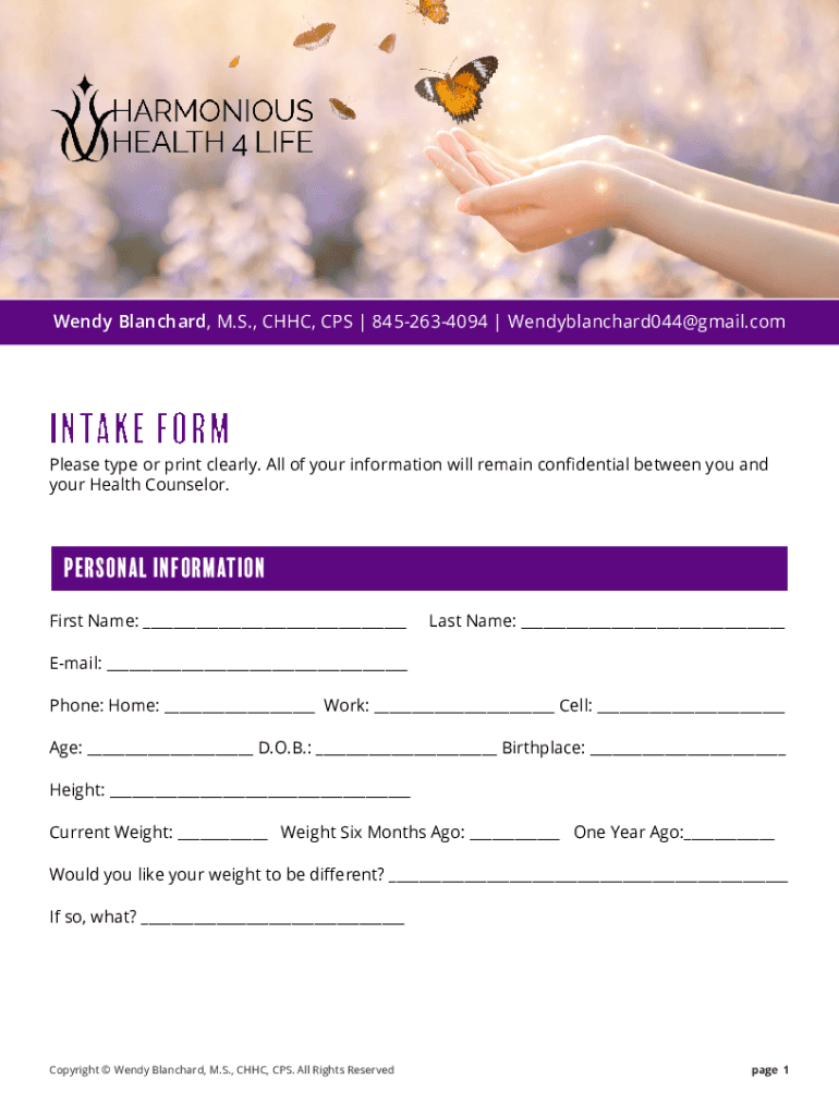Wendy Blanchard, M.S., CHIC, CPS 8452634094 Wendyblanchard044 Gmail. Dominate Formulas type or print clearly. All of your information will remain confidential between you and your Health Counselor.