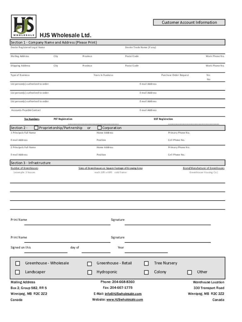 Customer Account Information Wholesale Ltd. Section 1 Company Name and Address (Please Print) Dealer Registered Legal Newsdealer Trade Name (if any)Mailing AddressCityProvincePostal Bodywork Phone