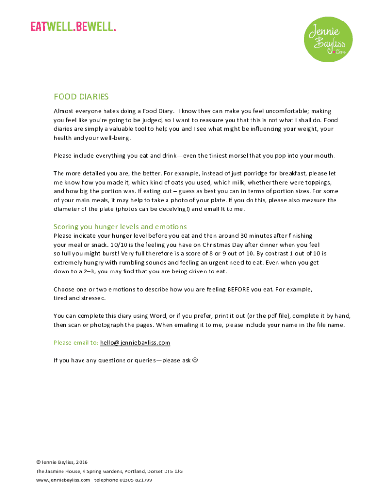 Fill out your ew food diary form online with pdfFiller!