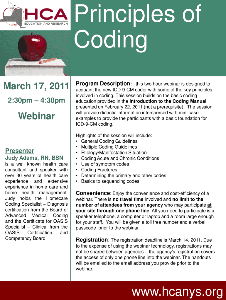 Get the free Principles of Coding - Home Care Association of New York State - hca-nys