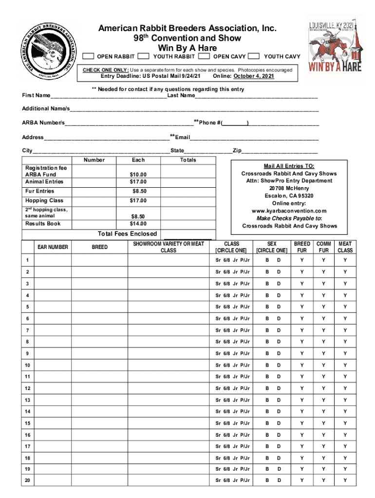 Get the free ARBA Entry FORM