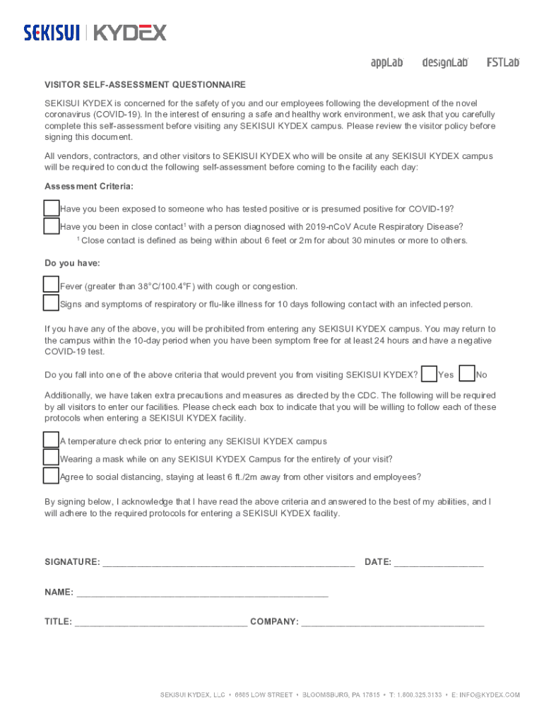 VISITOR REASSESSMENT QUESTIONNAIRE SERIOUS INDEX is concerned for the safety of you and our employees following the development of the novel coronavirus (COVID-19). In the interest of ensuring a safe