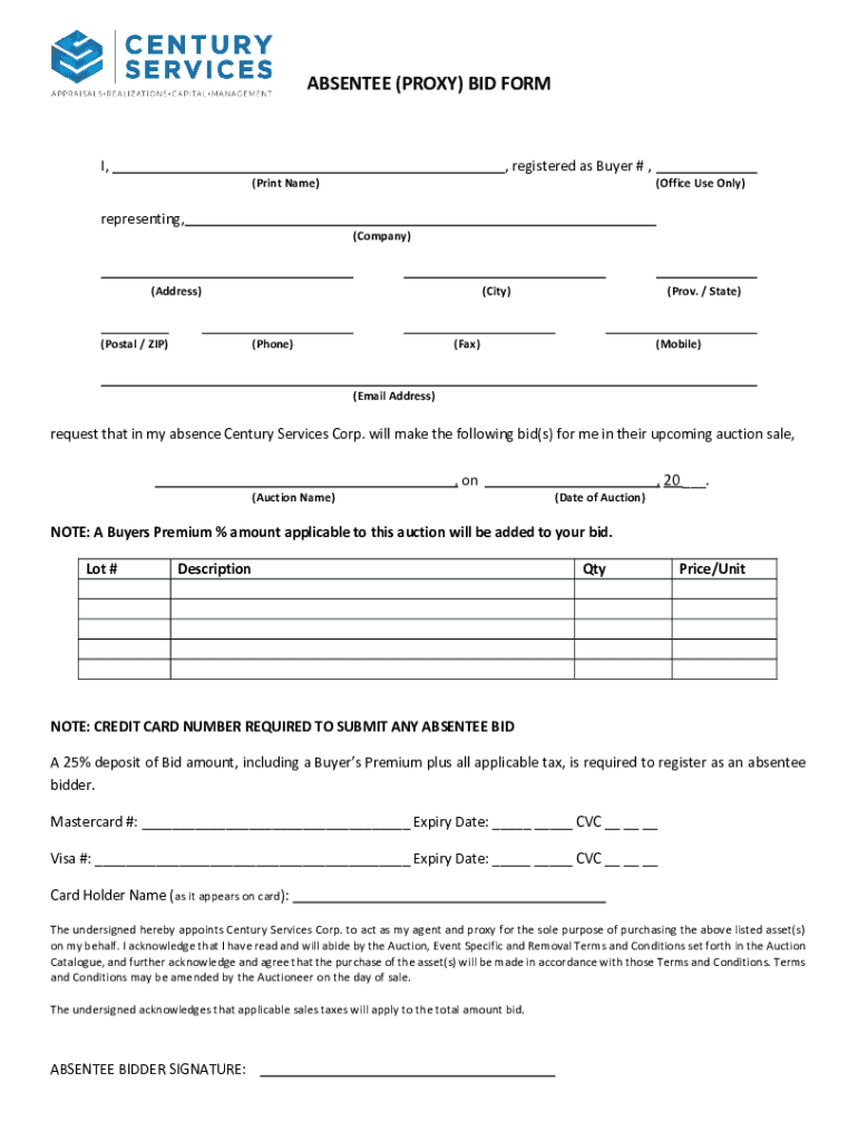 Get the free Online ABSENTEE PROXY BID FORM Fax Email Print ...