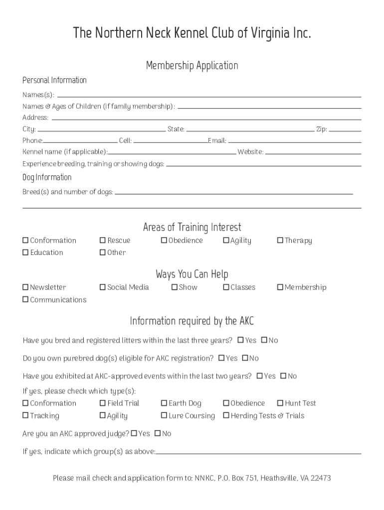 Get the free northernneckkennelclub.comPDFs8245-membershipThe Northern Neck Kennel Club of Virgin...
