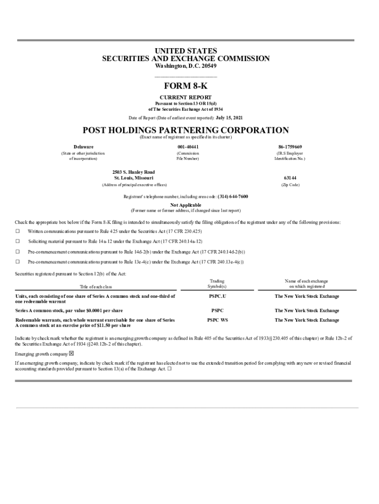 Get the free FORM 8-K POST HOLDINGS PARTNERING CORPORATION - postpspc.com