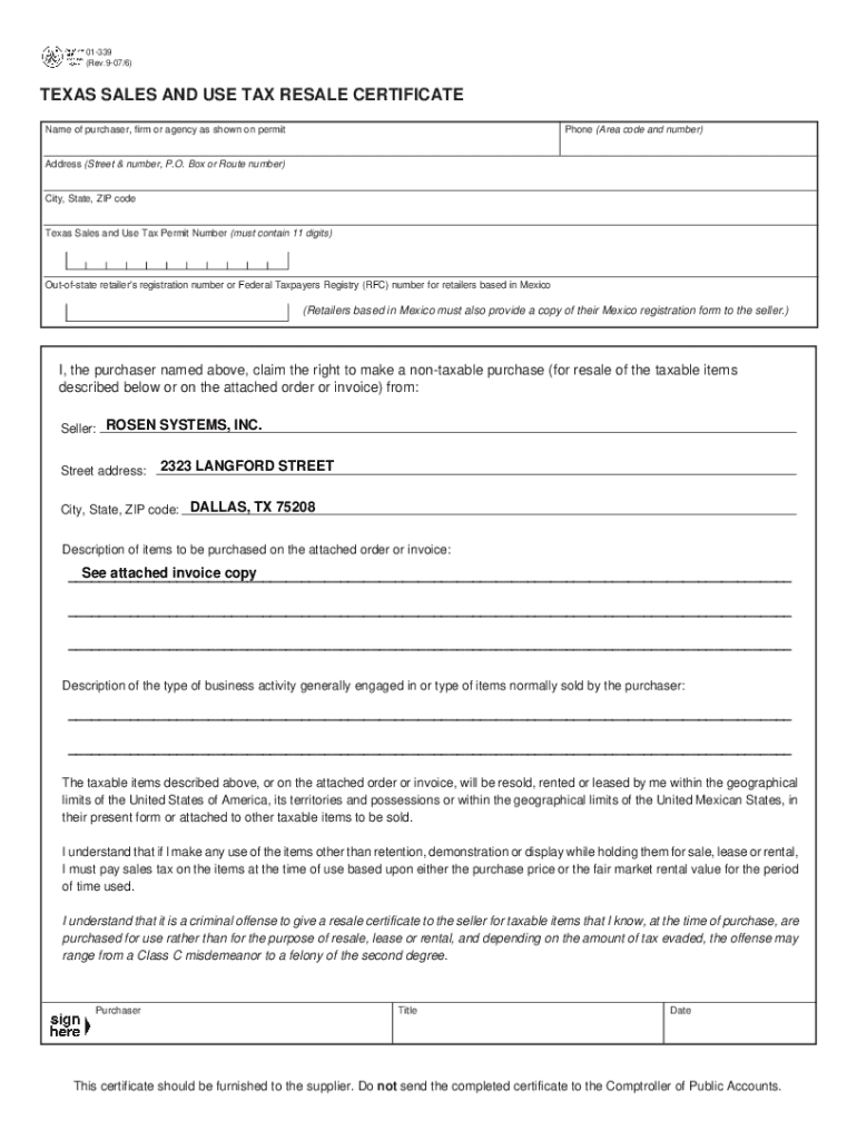 How to fill out resale certificate texas