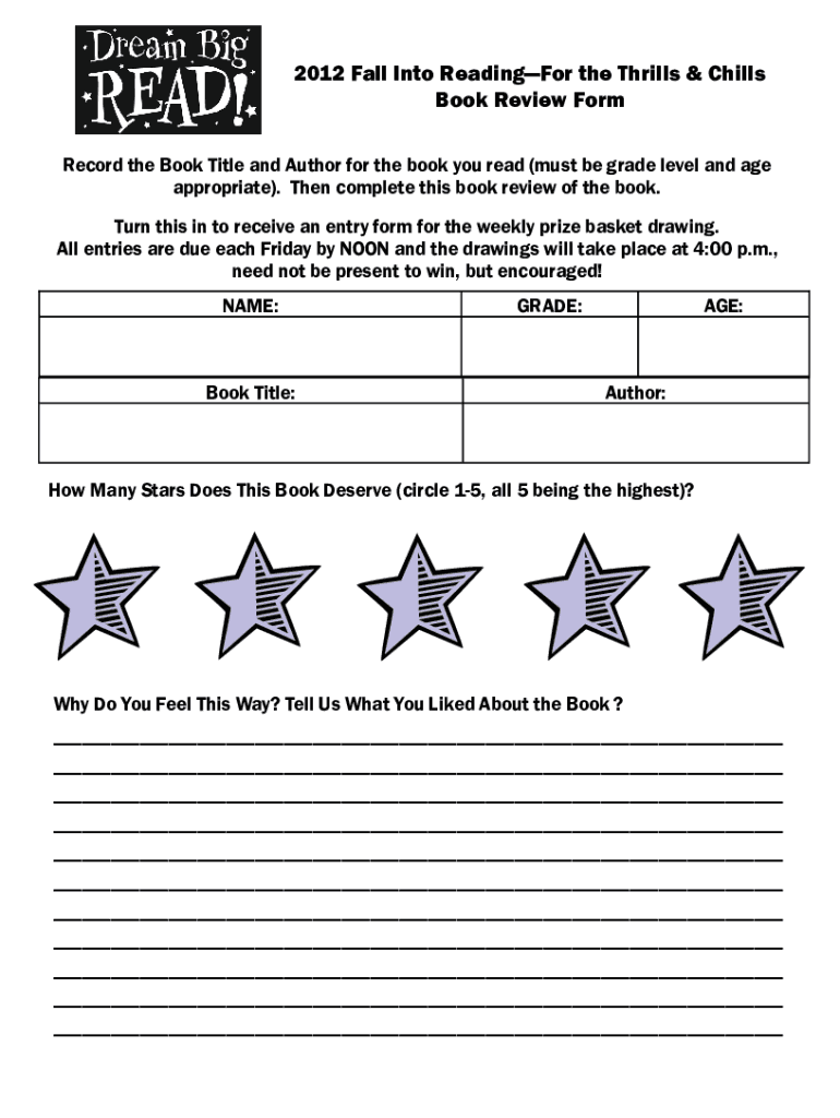 Get the free 2012 Fall Into ReadingFor the Thrills & Chills Book Review Form