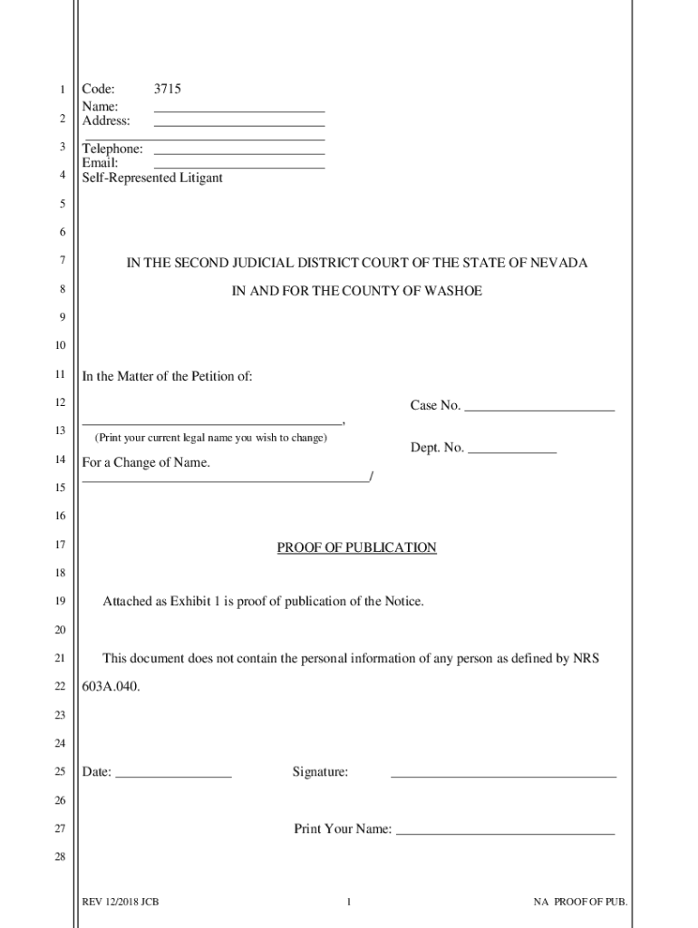 1 2 3 4Code: 3715 Name: Address: Telephone: Email: SelfRepresented Litigant5 6 7IN THE SECOND JUDICIAL DISTRICT COURT OF THE STATE OF NEVADA8IN AND FOR THE COUNTY OF WASHOE9 10 11In the Matter of