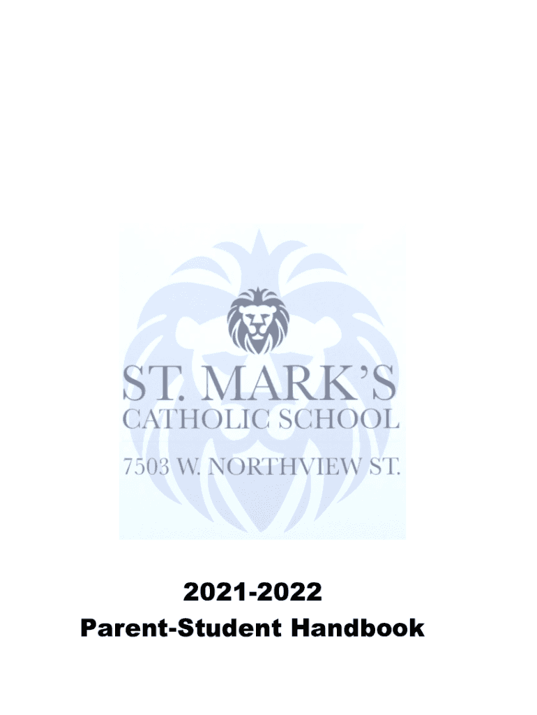 20212022 ParentStudent HandbookThank you for choosing St. Marks Catholic School to assist you in developing your children's intellectual, spiritual and physical growth. St. Marks Catholic School is
