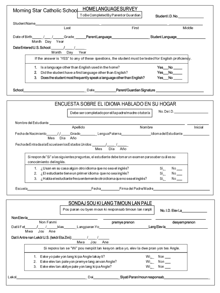 Get the free New Student HOME LANGUAGE SURVEY FORM.docx