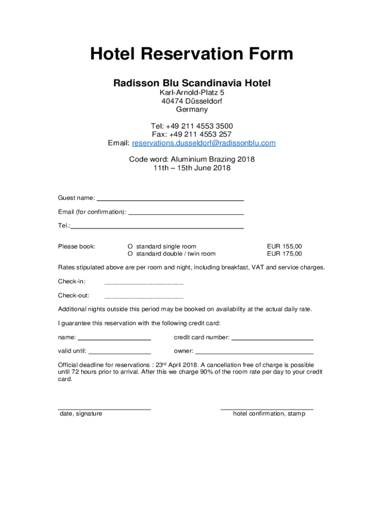 Hotel Reservation Form Radisson Blu Scandinavia Hotel KarlArnoldPlatz 5 40474 Düsseldorf Germany Tel: +49 211 4553 3500 Fax: +49 211 4553 257 Email: reservations. Düsseldorf radissonblu.com Code