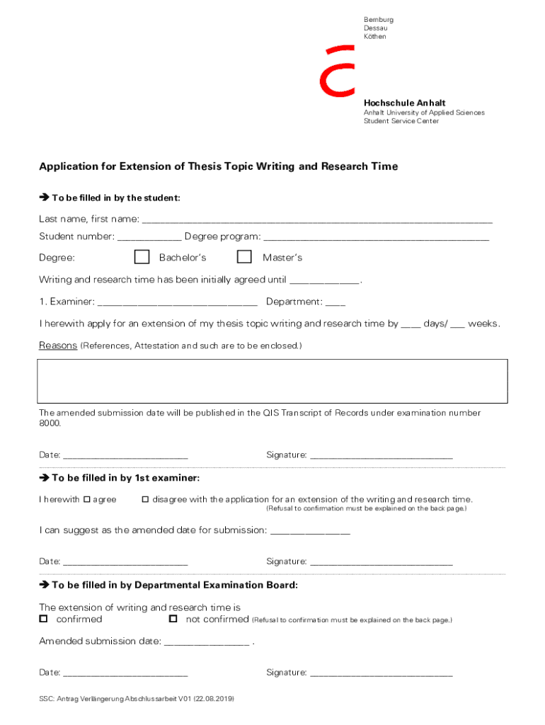 Bern burg Essay KthenHochschule An halt University of Applied Sciences Student Service CenterApplication for Extension of Thesis Topic Writing and Research Time To be filled in by the student: Last