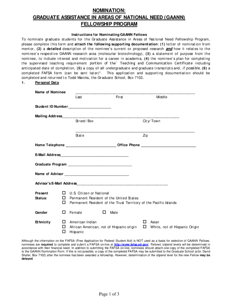 Get the free NOMINATION: GRADUATE ASSISTANCE IN AREAS OF NATIONAL NEED ...