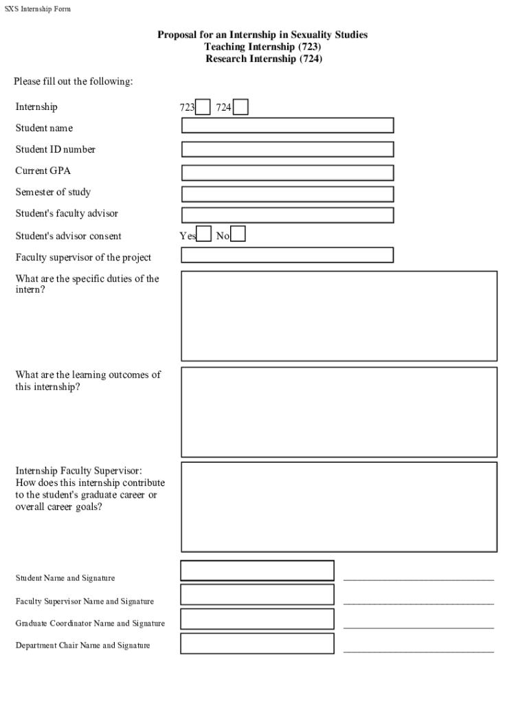SAS Internship FormProposal for an Internship in Sexuality Studies Teaching Internship (723) Research Internship (724) Please fill out the following: Internship723724YesNoStudent name Student ID number