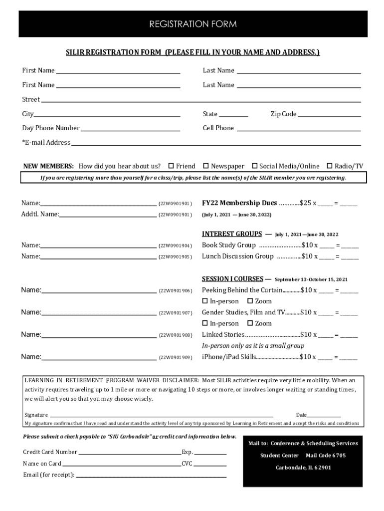 REGISTRATION FORM SI LIR REGISTRATION FORM (PLEASE FILL IN YOUR NAME AND ADDRESS.) First Nameless NameFirst Nameless Backstreet CityStateDay Phone Numbered Phonetic Code×Email Address NEW MEMBERS: