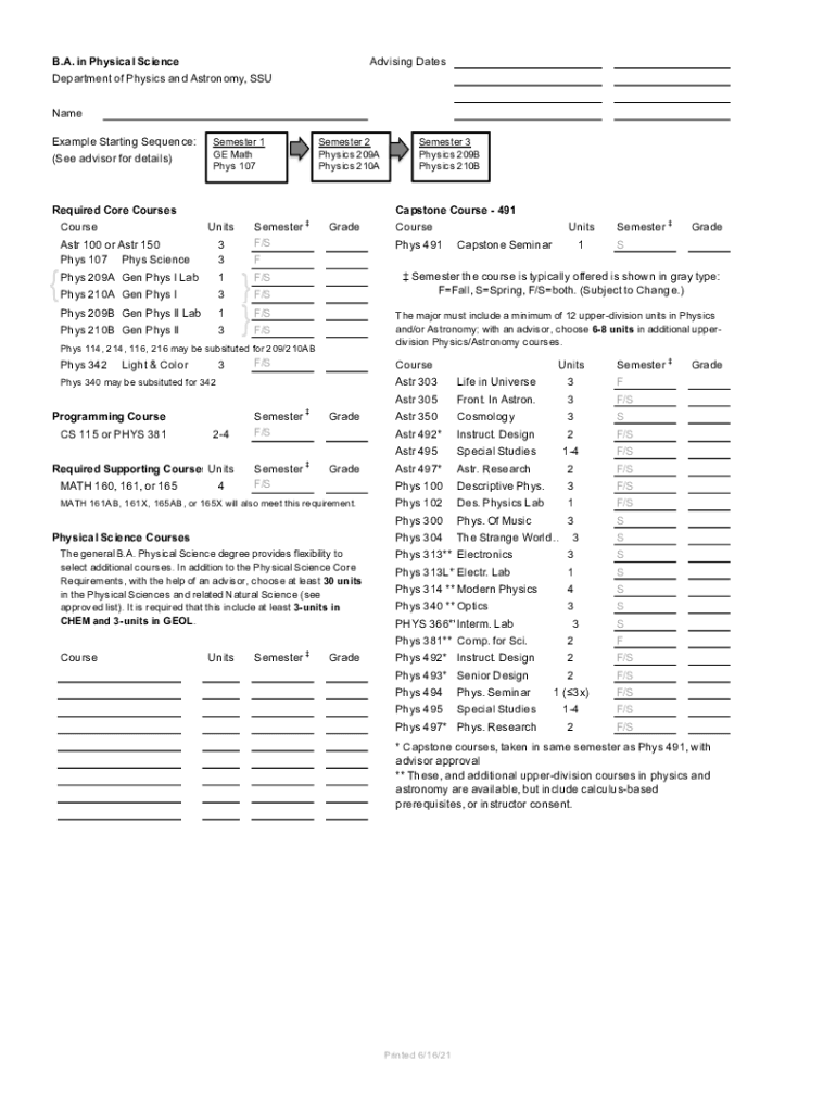 Edit your advising form physical science form online