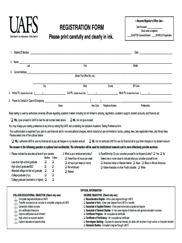 Get the free Online REGISTRATION FORM - academics.uafs.edu Fax ...