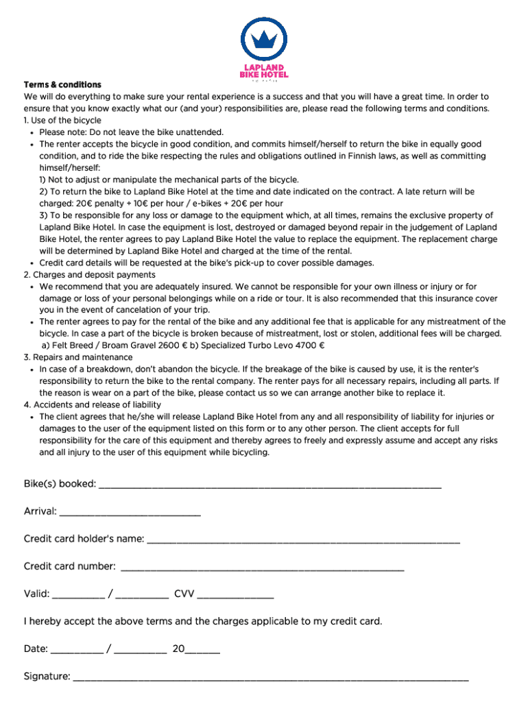 Anyone who wants to rent a bike needs to read and fill out the bike rent terms.