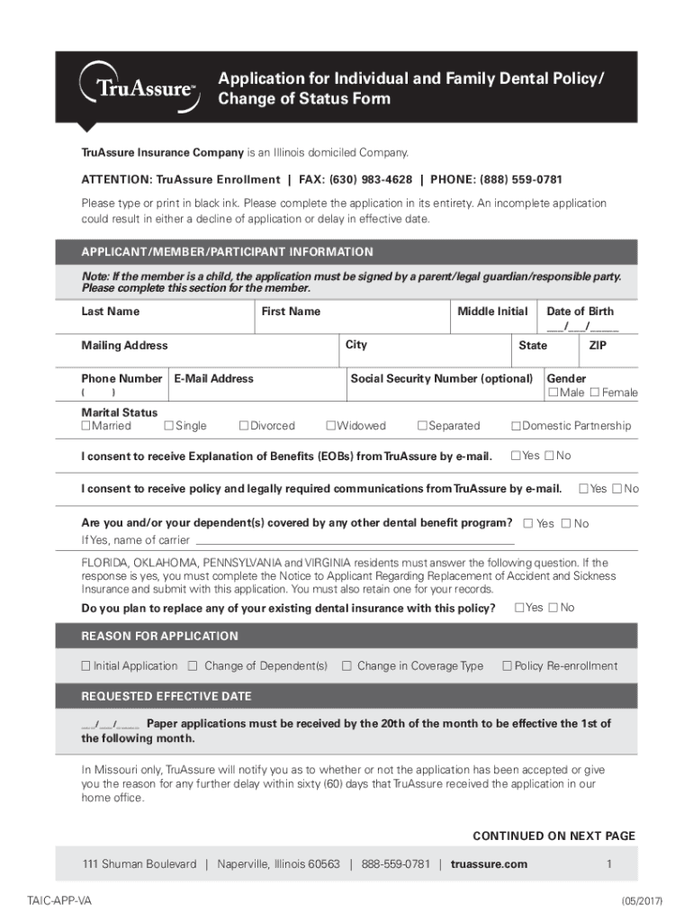 Get the free Application for Individual and Family ... - truassure.com