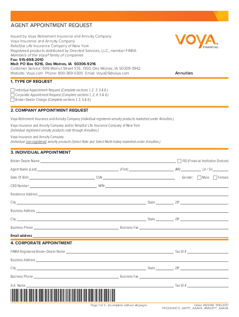 RESET FIRMAMENT APPOINTMENT REQUEST Issued by Goya Retirement Insurance and Annuity Company Goya Insurance and Annuity Company Register Life Insurance Company of New York Registered products distributed