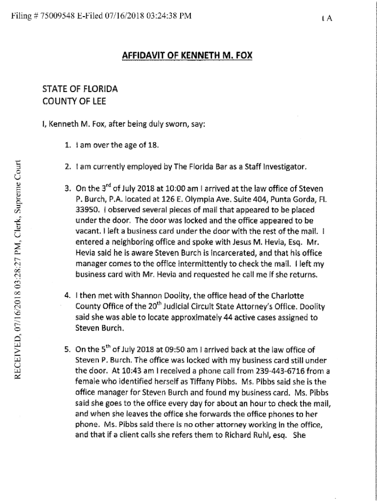 Filing # 75009548 Filed 07/16/2018 03:24:38 PMtAAFFIDAVIT OF KENNETH M. FOX STATE OF FLORIDA COUNTY OF LEE 1, Kenneth M. Fox, after being duly sworn, say: 1. I am over the age of 18. 2. I am currently