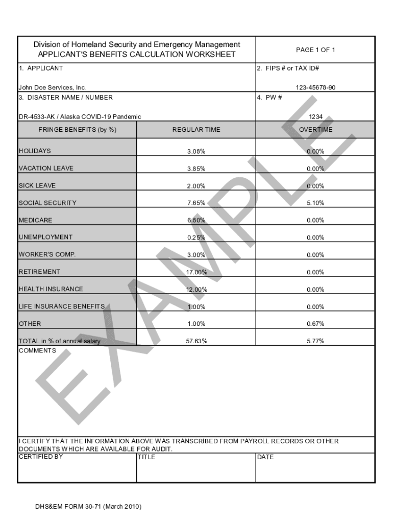 Get the free DHSEM Form 30-71 Benefits Calculation Worksheet example.xltx - ready alaska