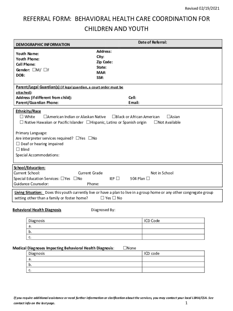 Get the free REFERRAL FORM: BEHAVIORAL HEALTH CARE COORDINATION FOR ...
