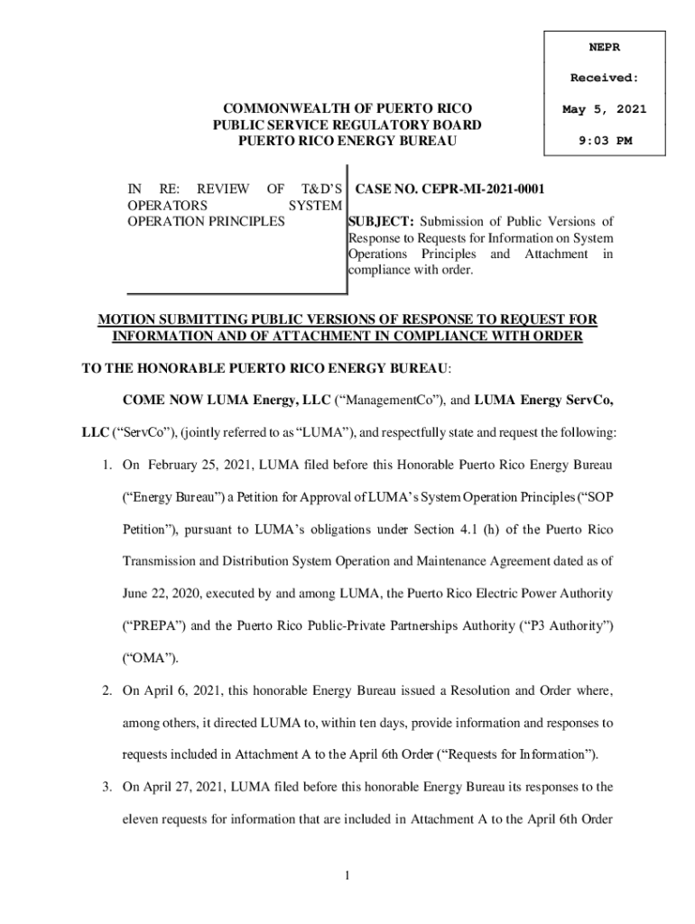 Get the free NEPR Received: COMMONWEALTH OF PUERTO RICO PUBLIC SERVICE ...