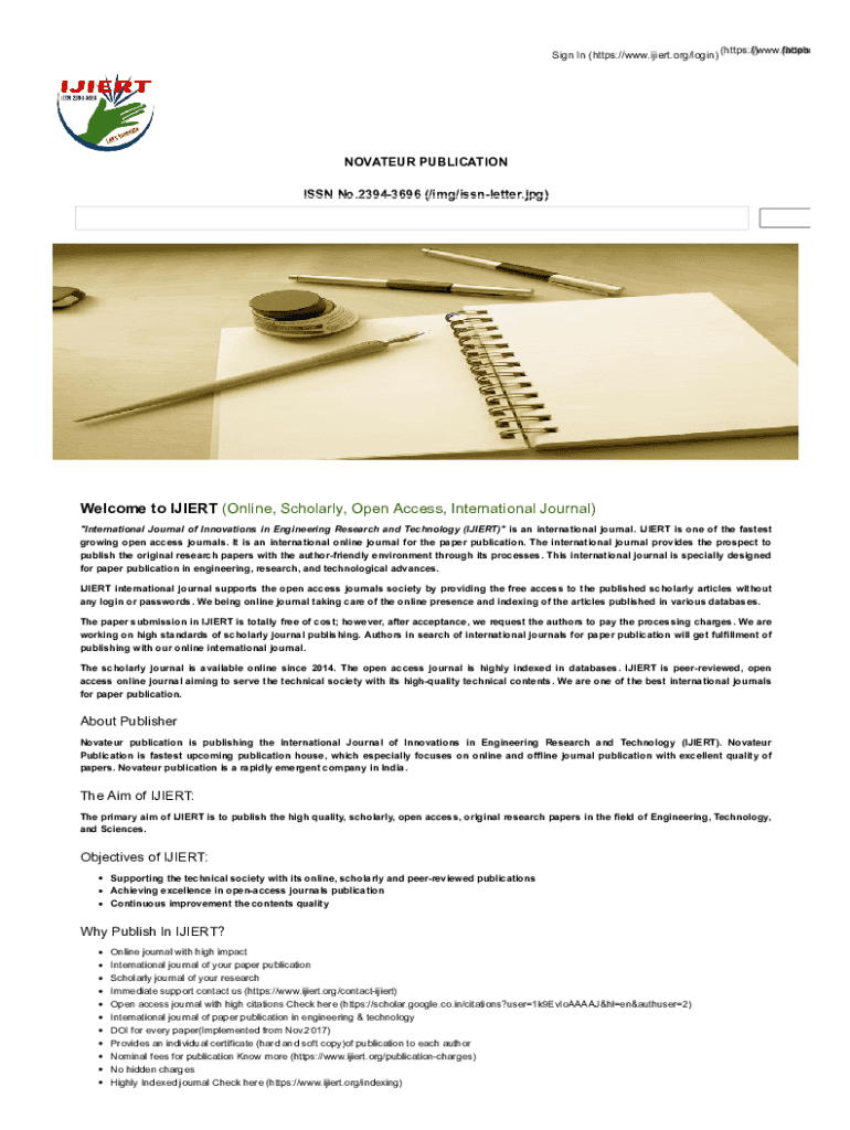 () (HTTPS: Sign In (https://www.ijiert.org/login) (https://www.faceboNOVATEUR PUBLICATION ISSN No.23943696 (/IMG/issnletter.jpg)Welcome to INSERT (Online, Scholarly, Open Access, International Journal)