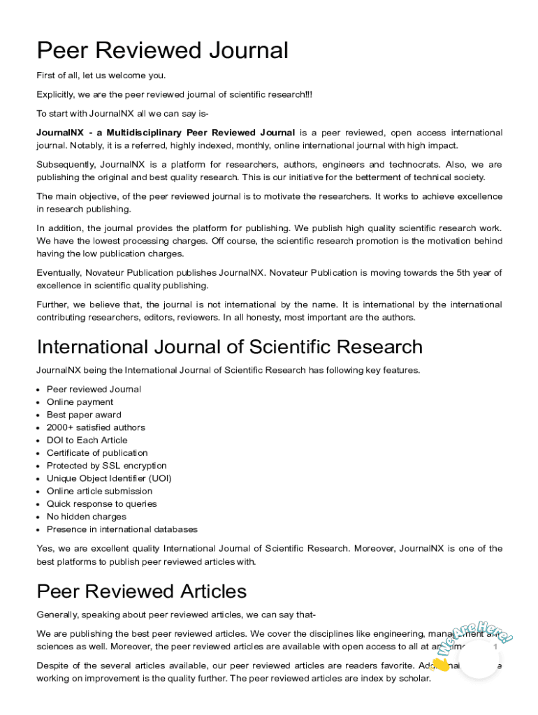 Peer Reviewed Journal First, let us welcome you. Explicitly, we are the peer reviewed journal of scientific research!!! To start with Journal all we can say isJournalNX a Multidisciplinary Peer Reviewed