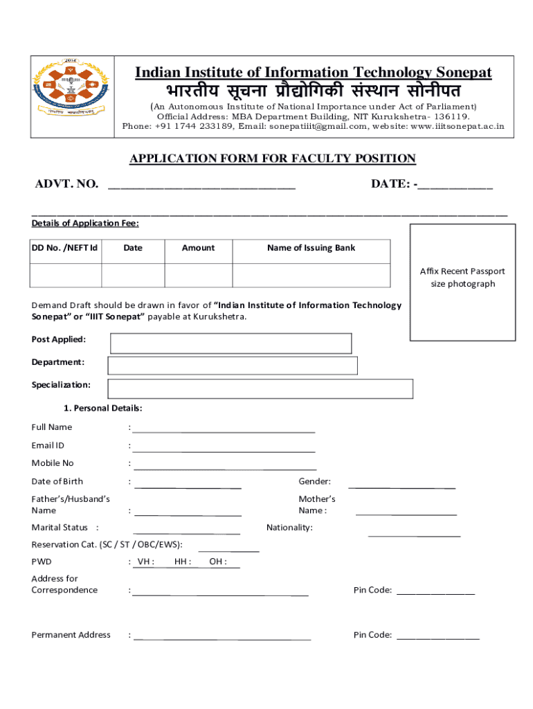 Get the free Indian Institute of Information Technology - IIIT, Sonepat