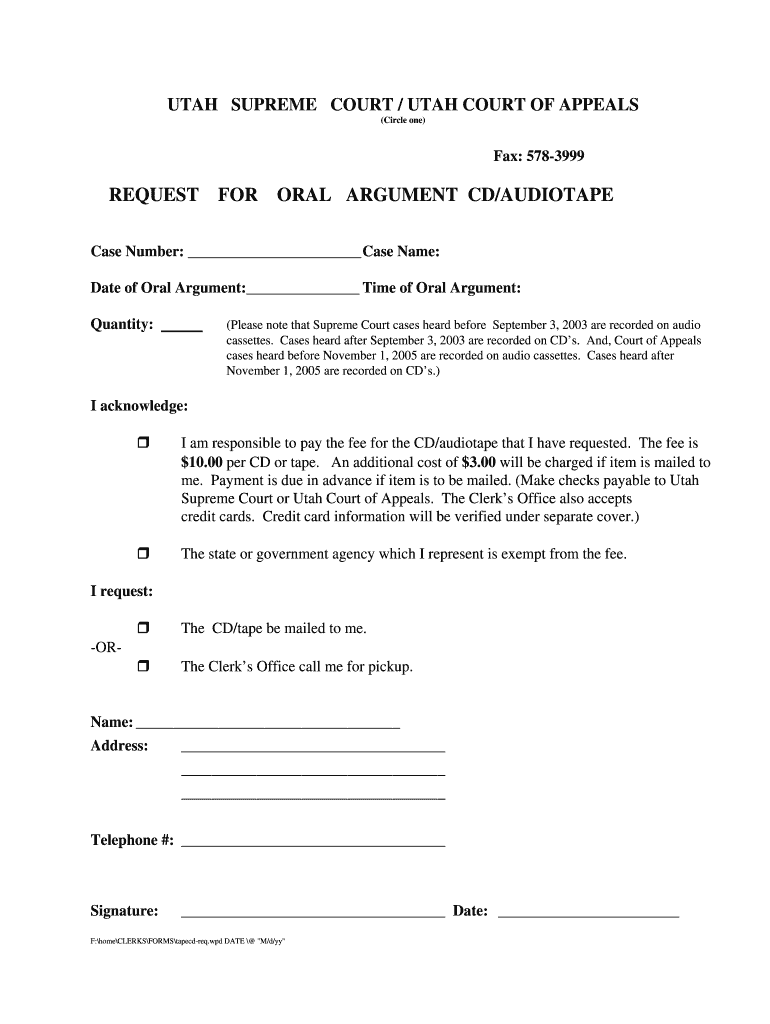 Get the free Request for Oral Argument CD/Audiotape - utcourts